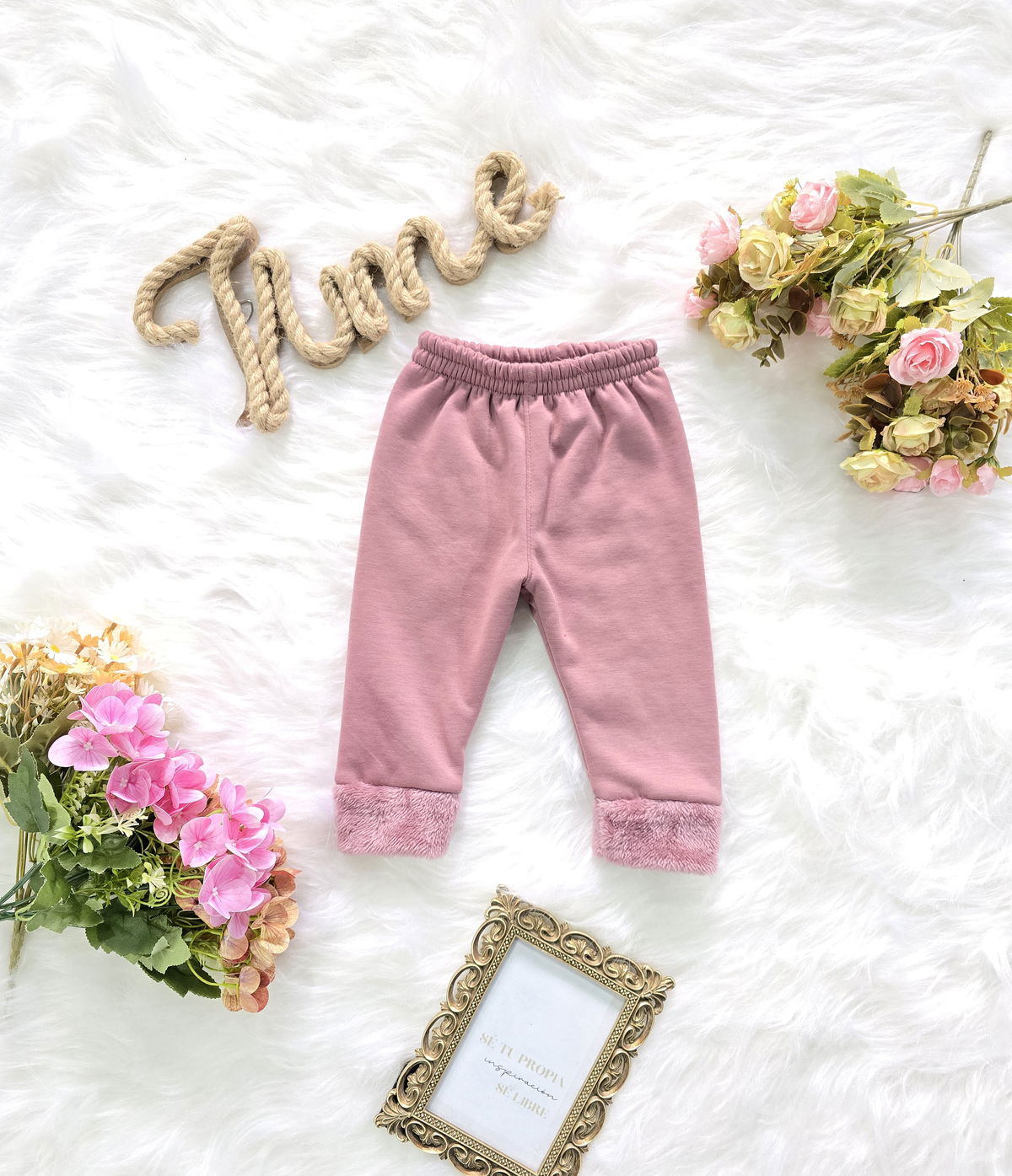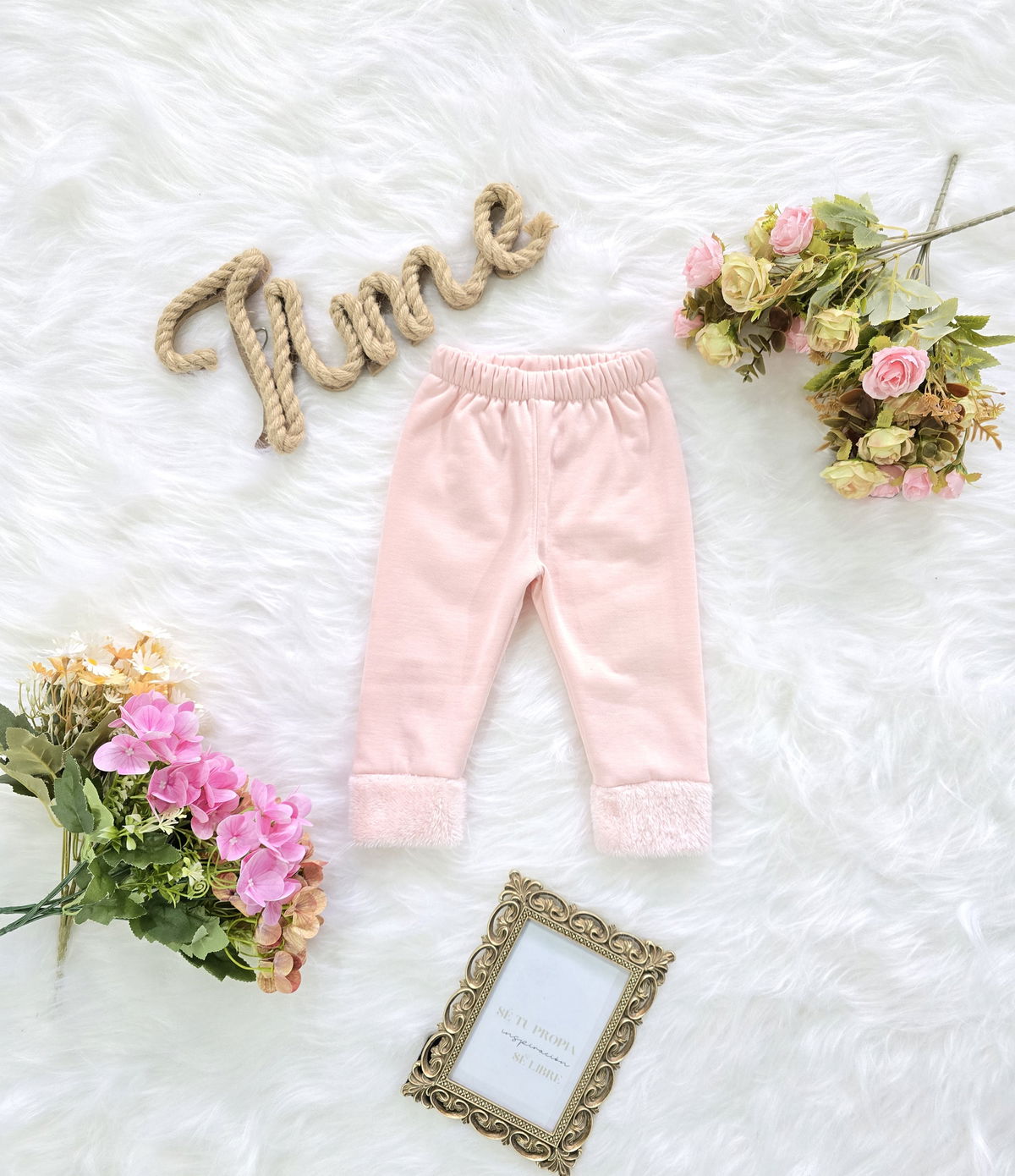 Babucha de beba confeccionada en tela jersey con detalle de piel en botamanga, suave, cómoda y de excelente calidad.