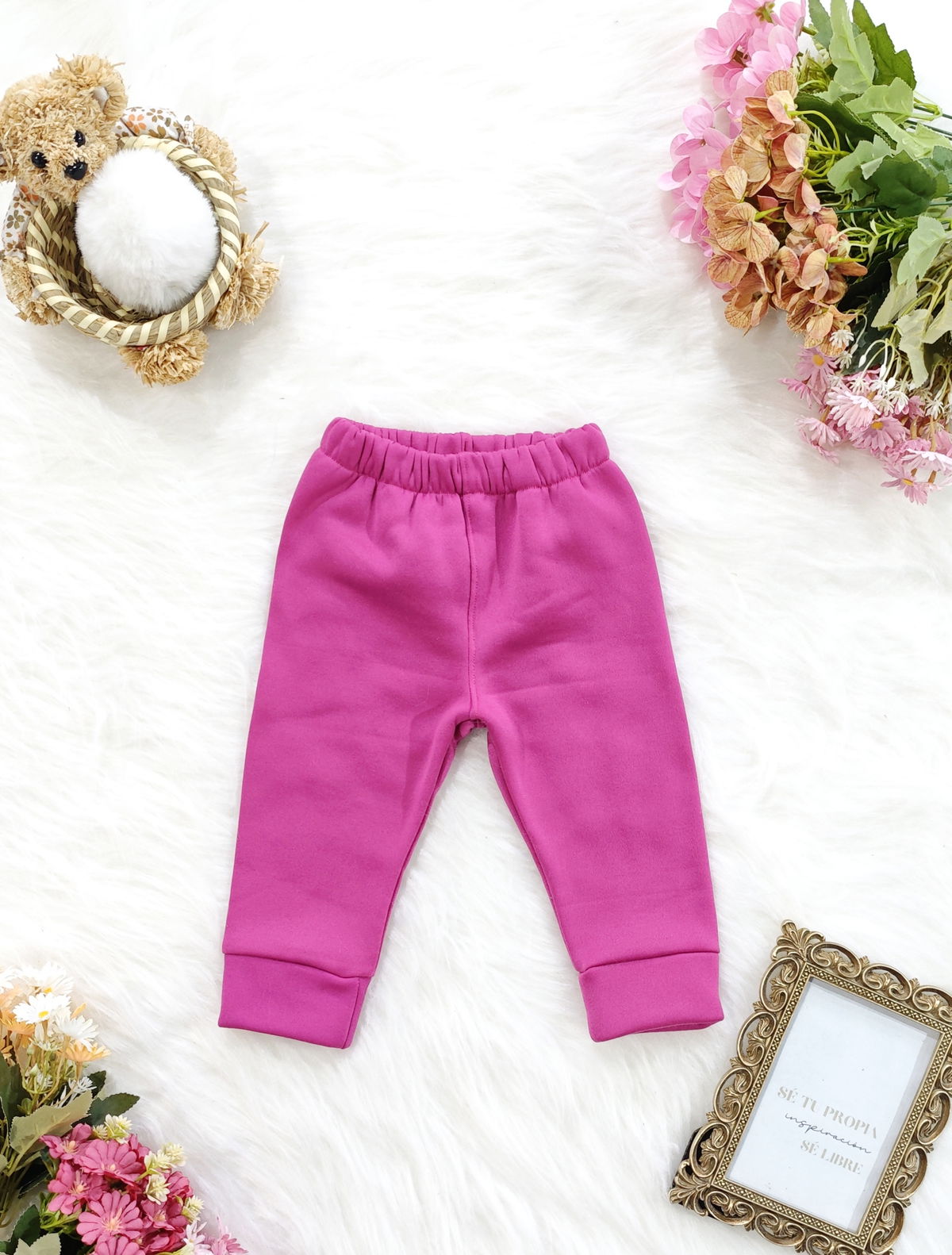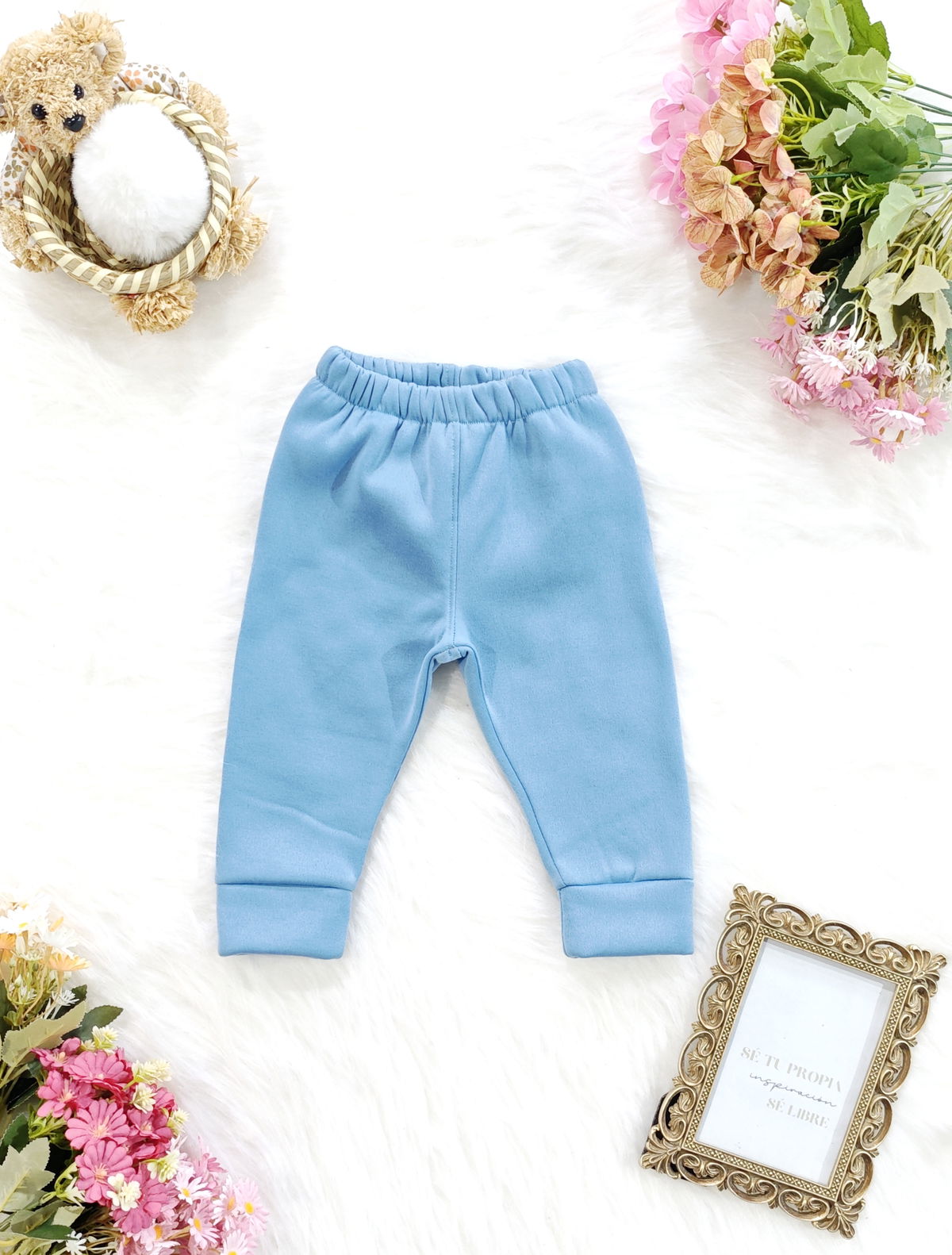 Babucha de beba confeccionada en acetato rizado, tela suave, cómoda y de excelente calidad.