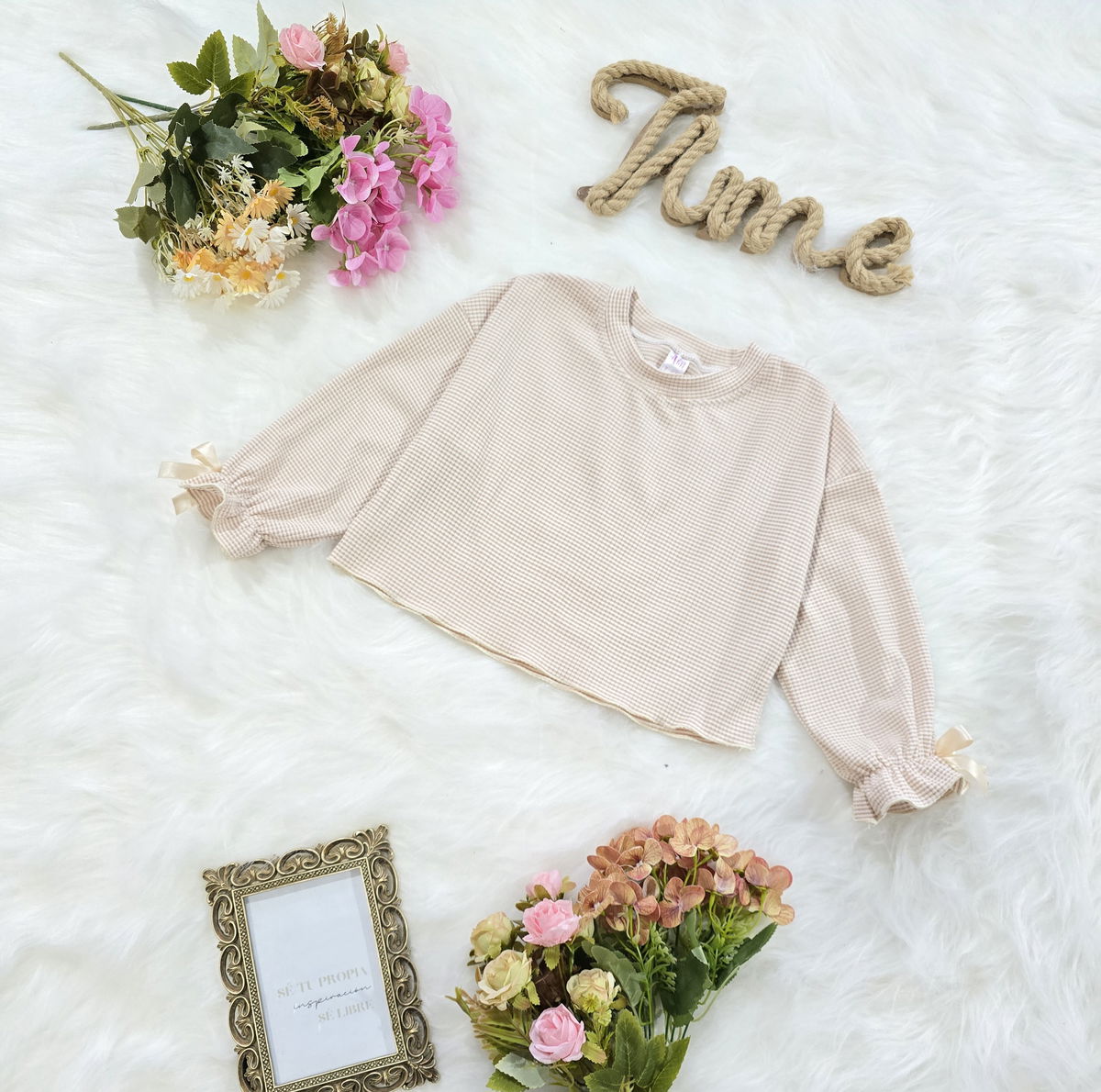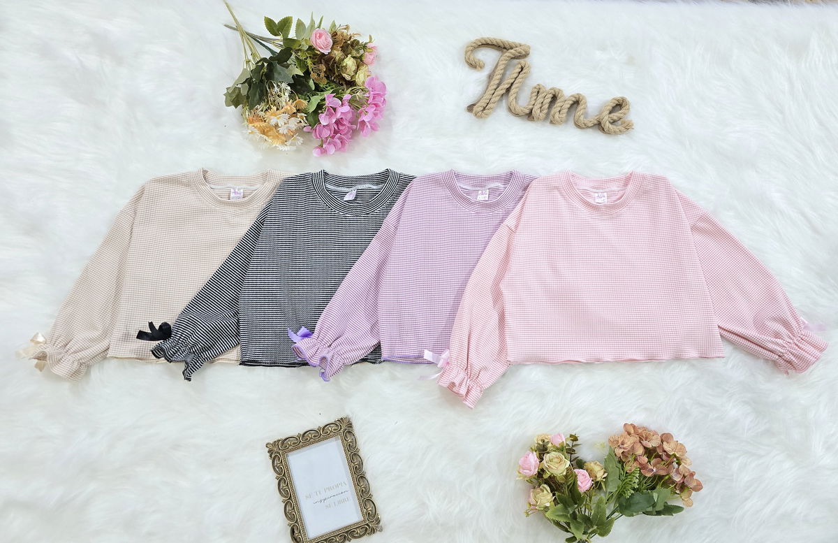 ✔️ Diseño rayado fino con detalle de moño decorativo en mangas