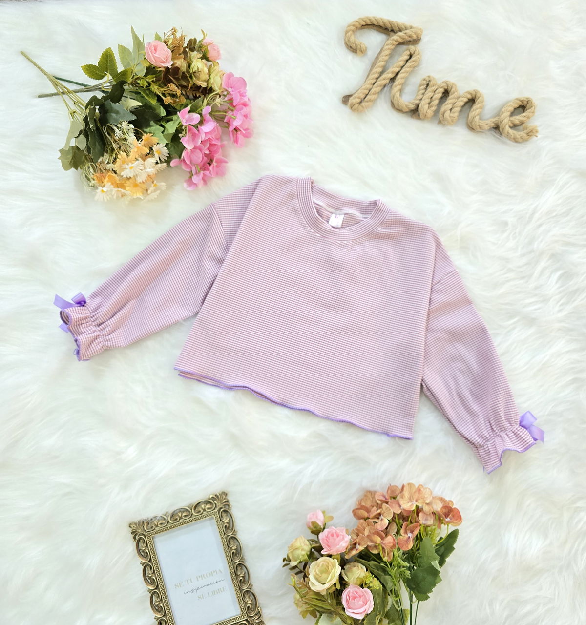 Buzo confeccionado en tela darlon rayado, ideal para brindar abrigo, suavidad y comodidad durante la temporada de frío. Su diseño delicado con moño en las mangas y rayado fino lo convierte en una prenda moderna y versátil para el uso diario.