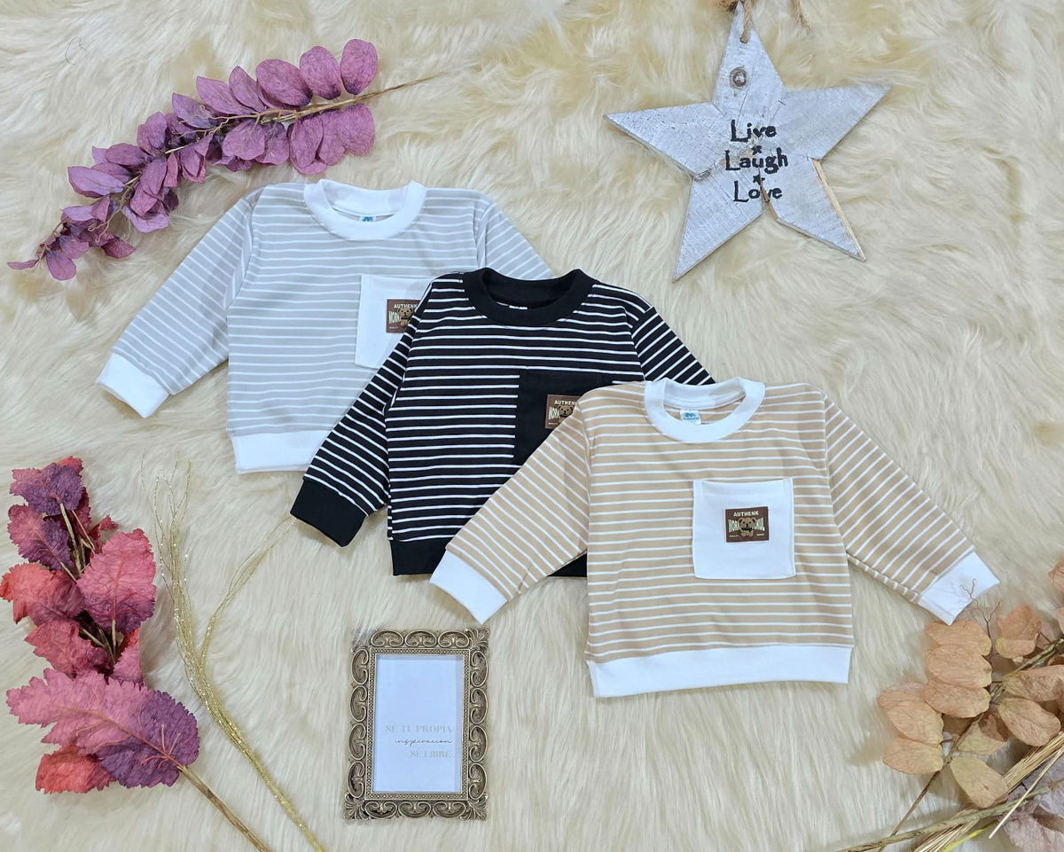 ✔️ Diseño rayado con bolsillo frontal combinado
