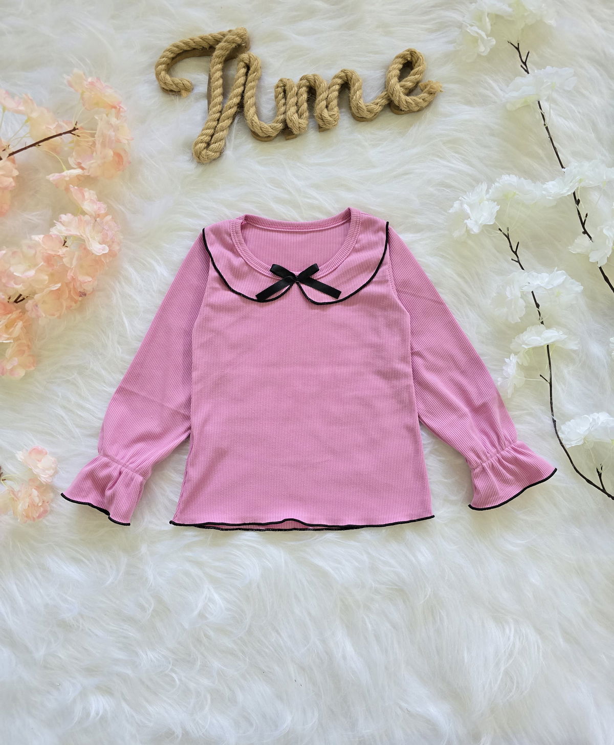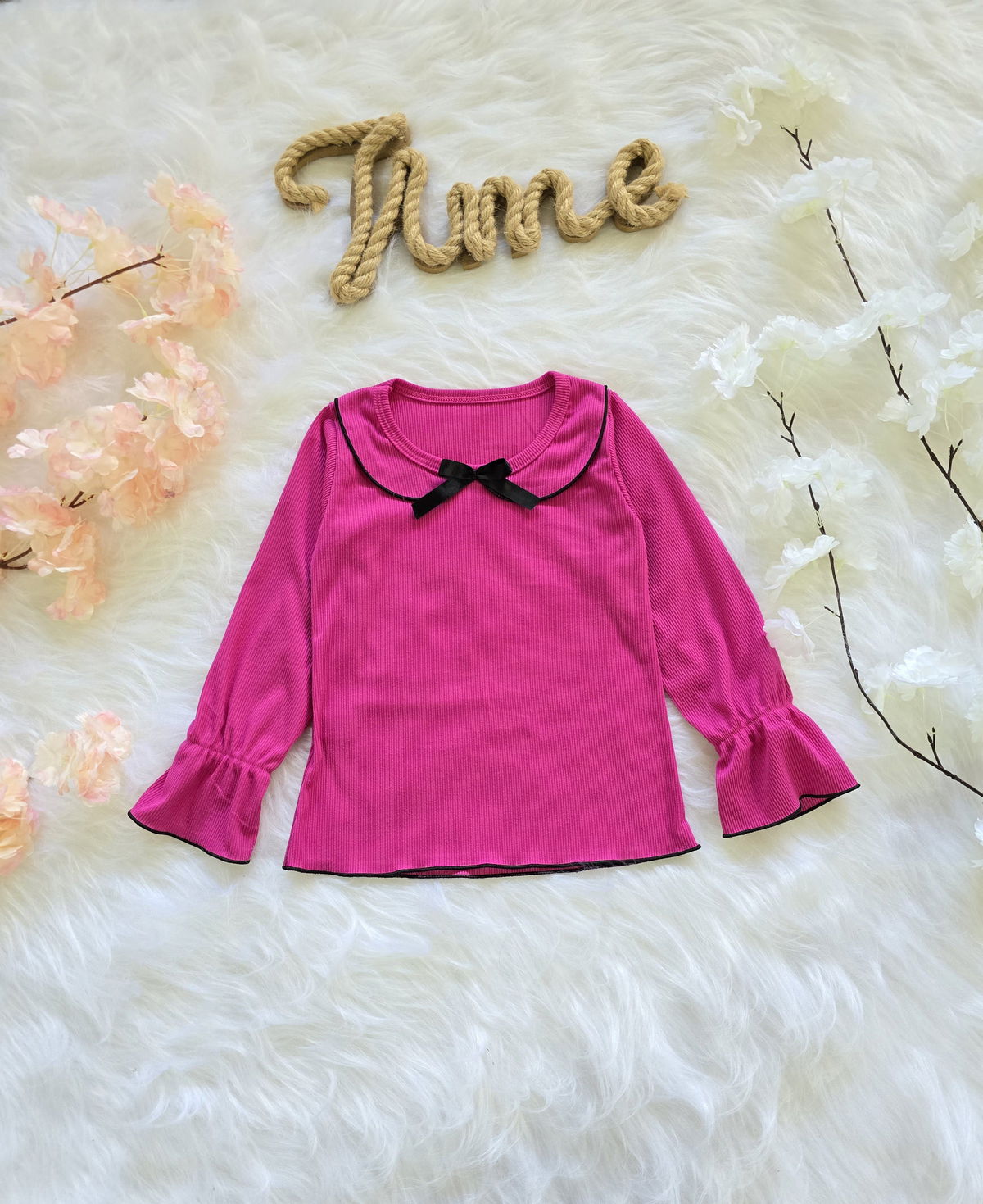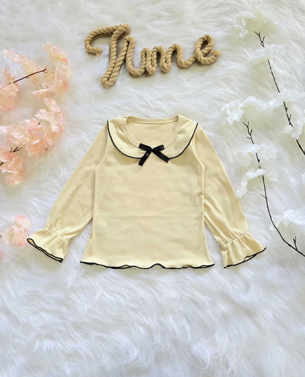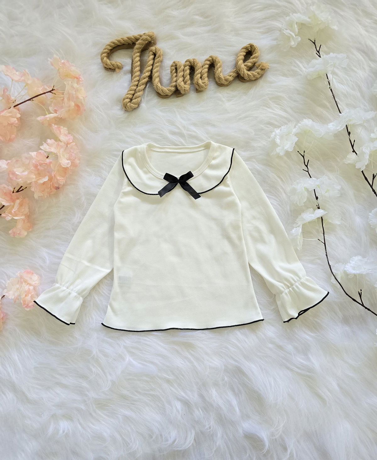 Diseño con cuello babero y detalle de moño que le aporta un estilo delicado y canchero.