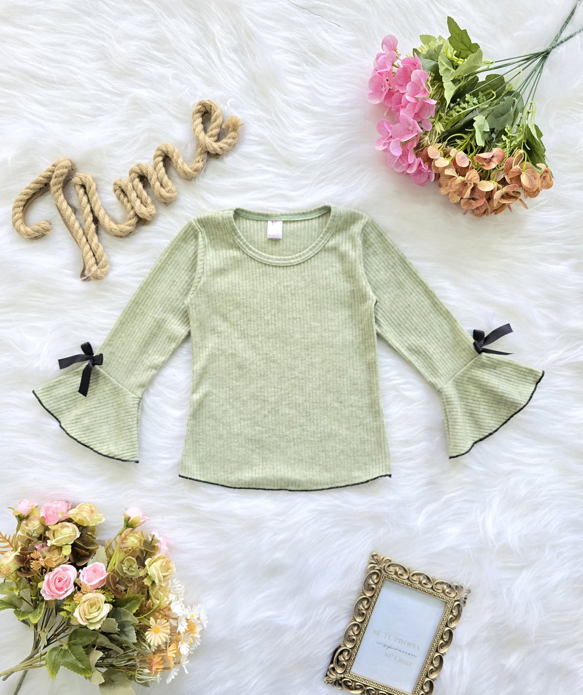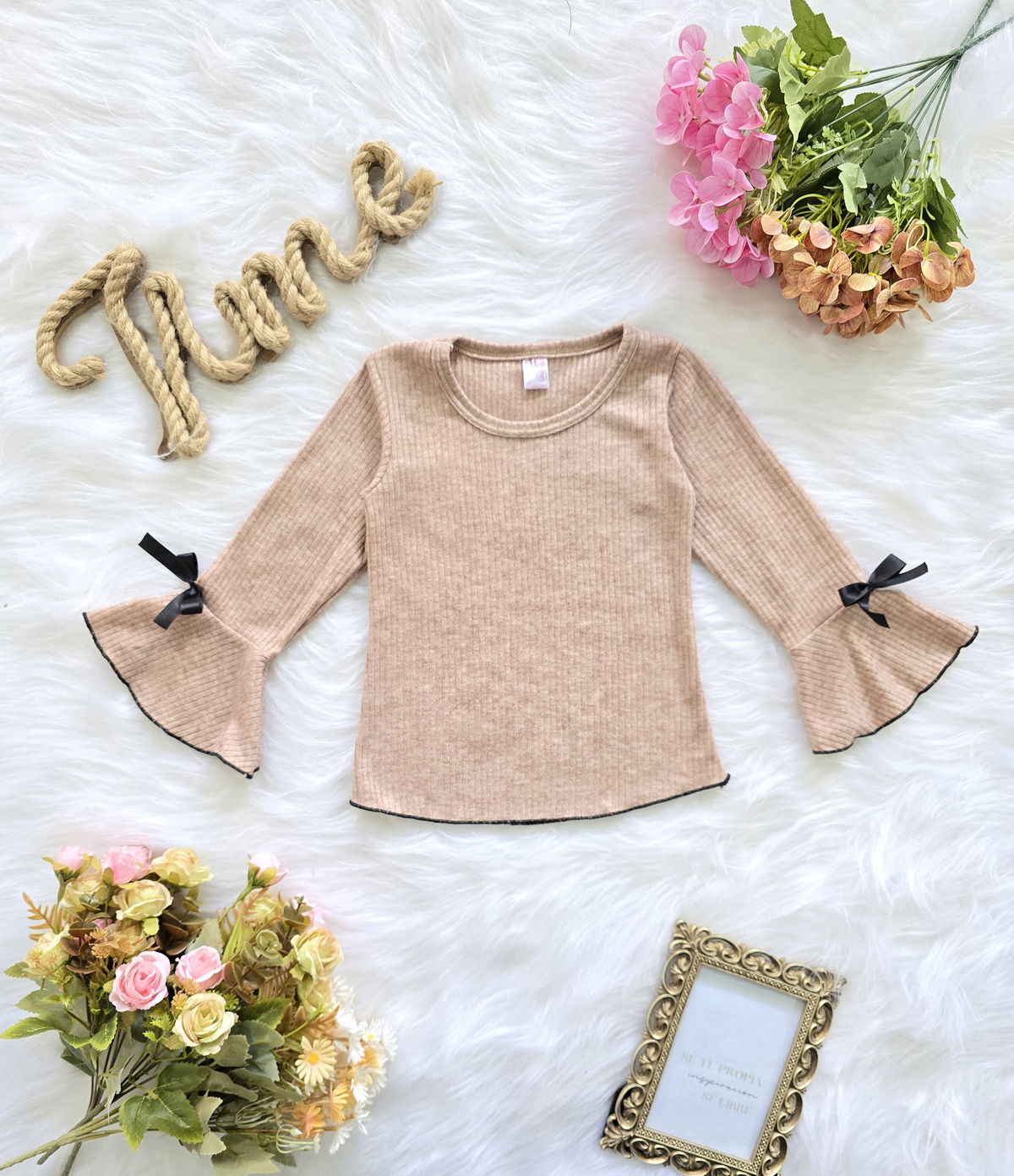 Camiseta confeccionada en tela lanilla morley oxford, ideal para brindar abrigo, suavidad y comodidad en el uso diario. Su diseño con mangas oxford y detalle de moño aporta un estilo delicado y moderno, perfecto para la temporada de frío.