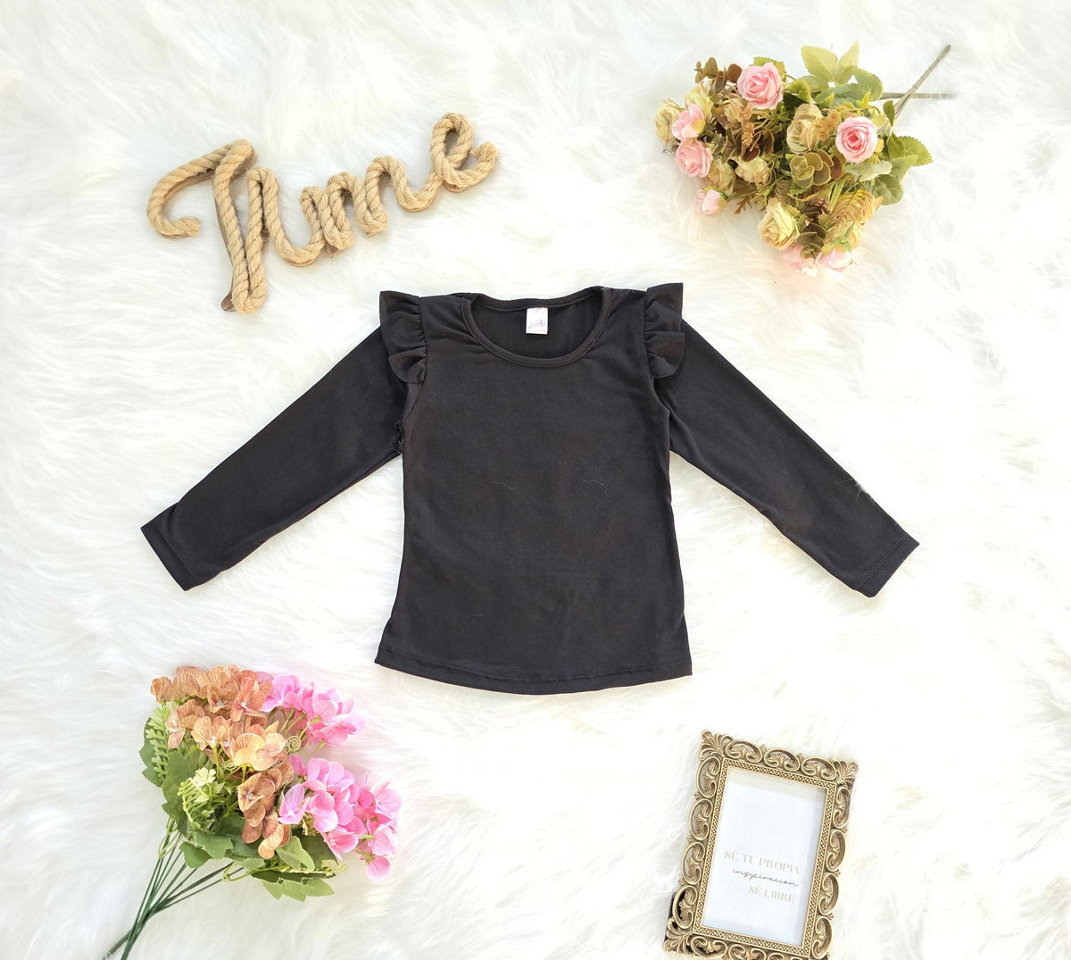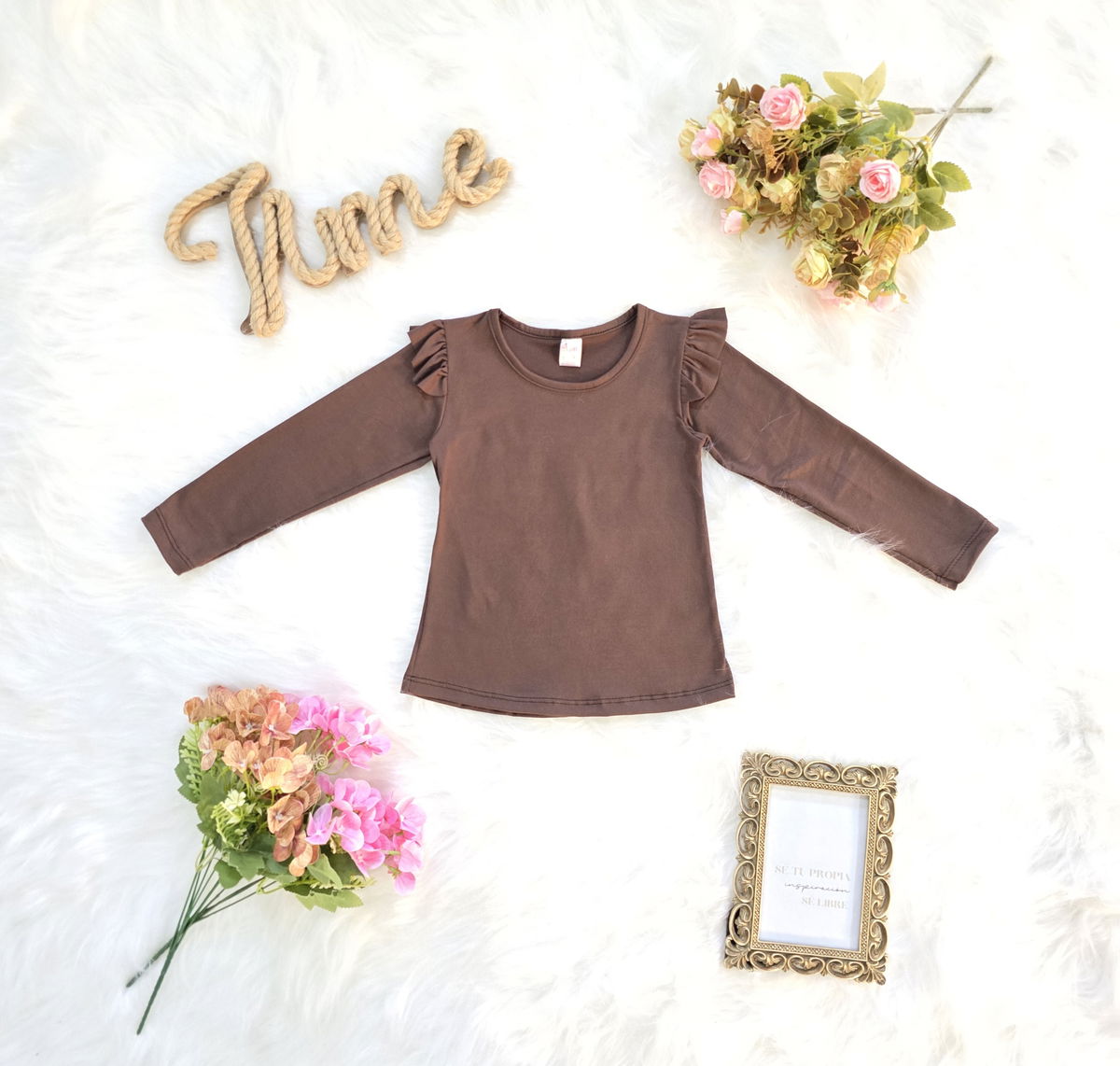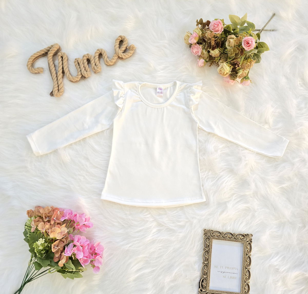 Camiseta confeccionada en tela modal soft, reconocida por su suavidad, elasticidad y confort. Su diseño con volados en los hombros le aporta un estilo delicado y moderno, ideal para complementar cualquier look infantil.