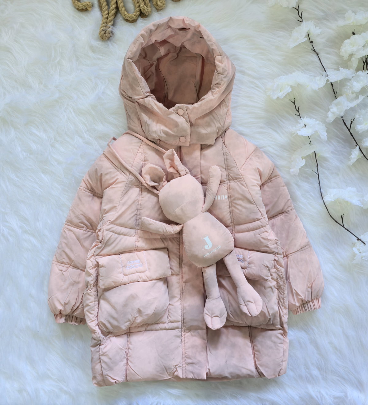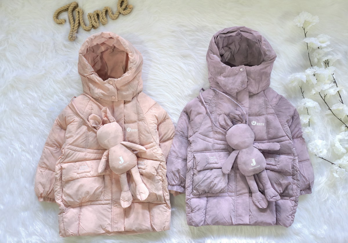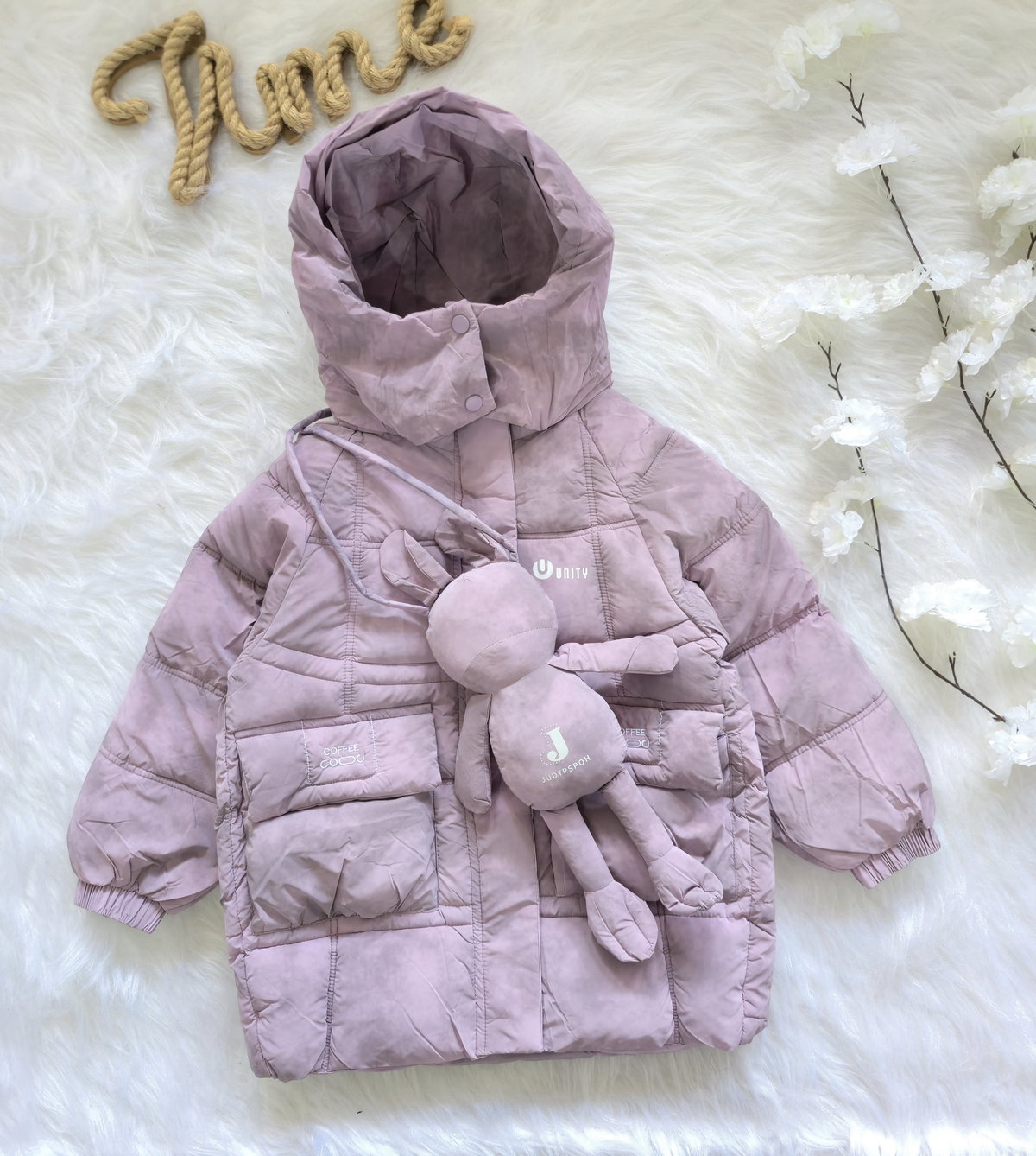 Camperón inflado con efecto grisado y detalle de peluche desmontable.