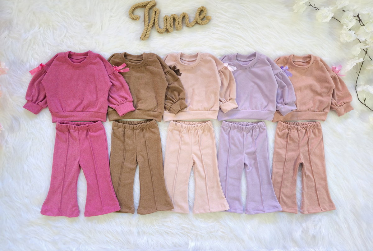Conjunto súper tierno y canchero, ideal para esta temporada. El detalle de moñito en los hombros y la calza oxford lo hacen un look distinto y muy vendible.