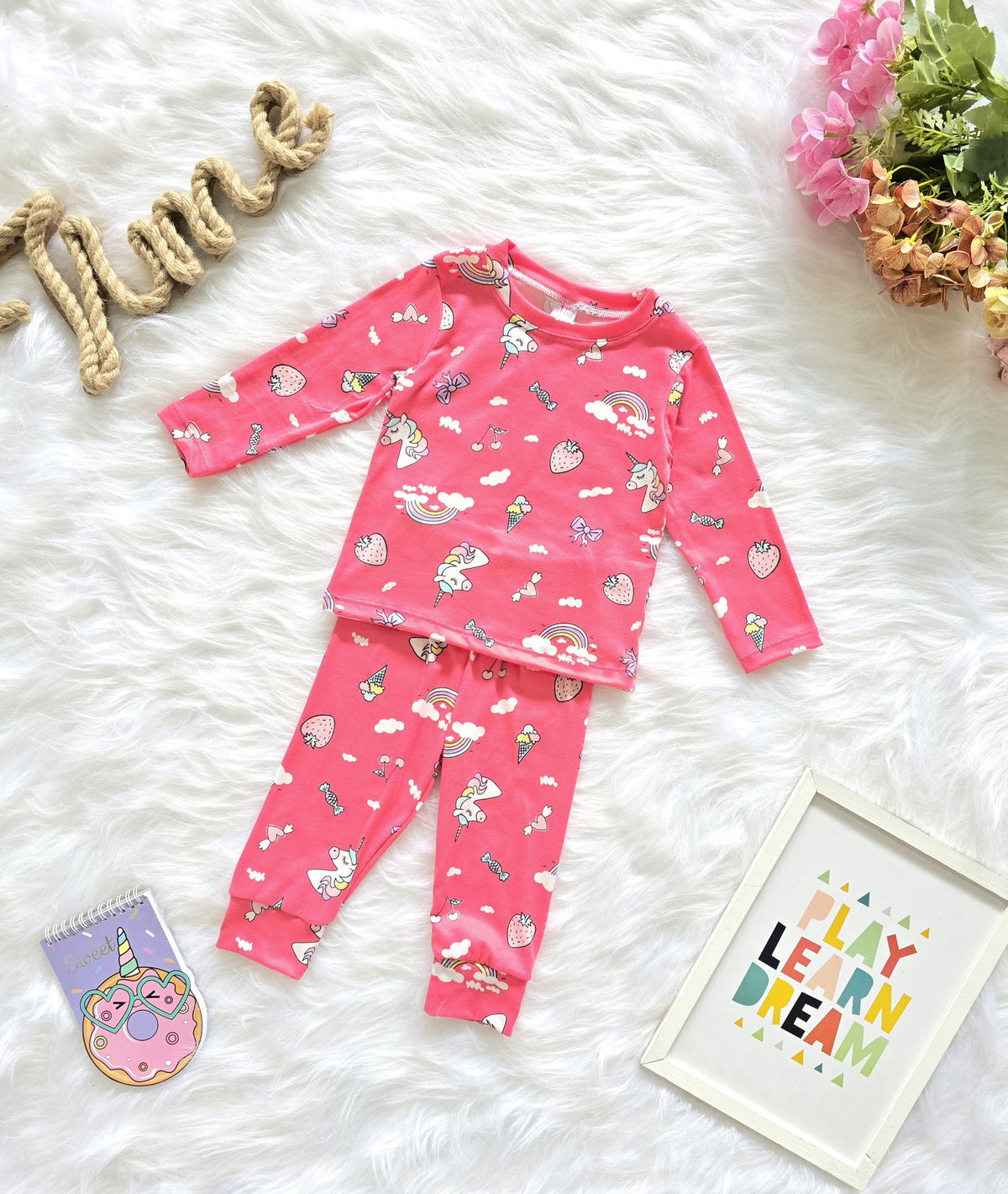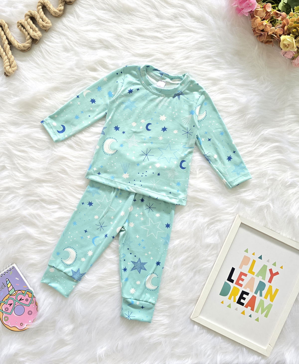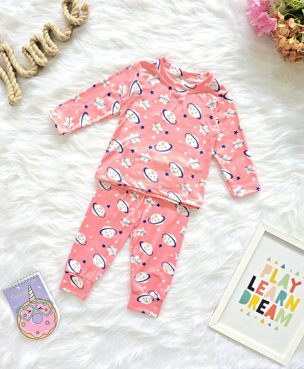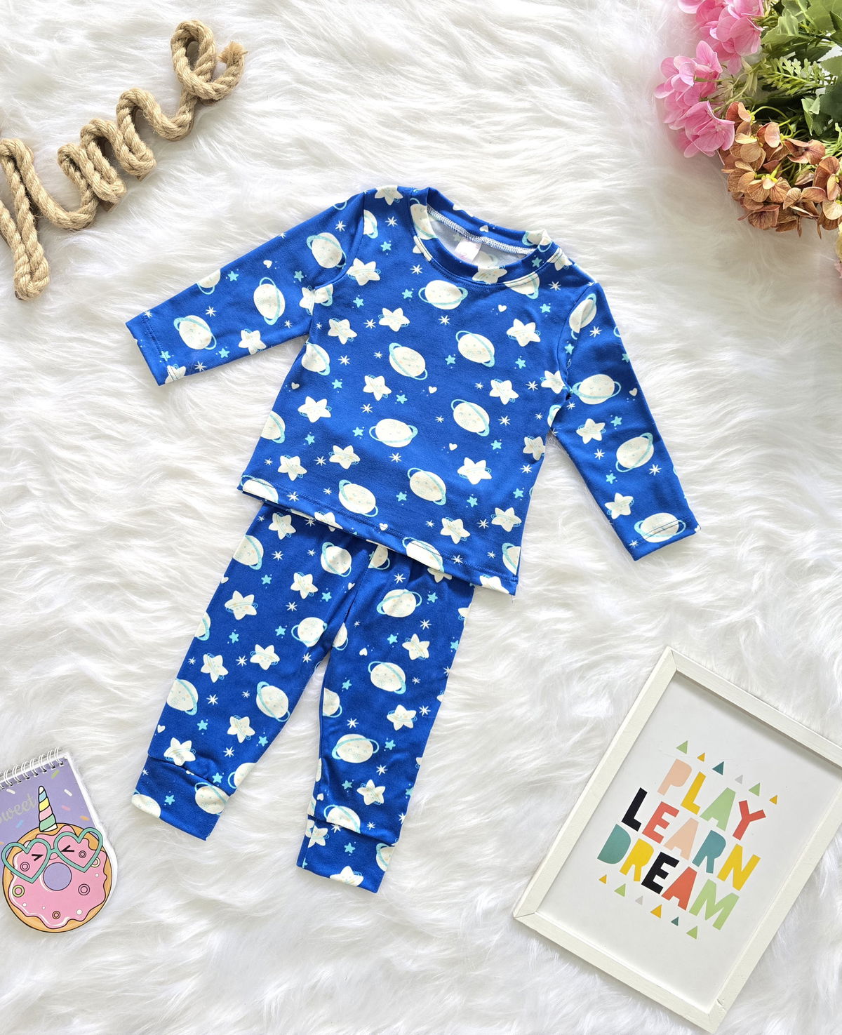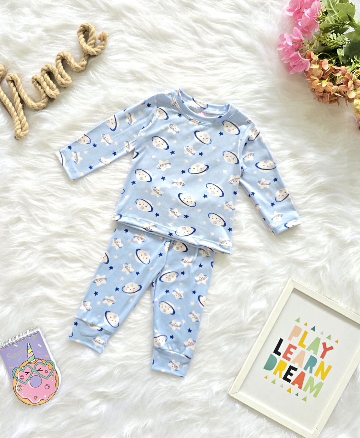 Conjunto pijama de beba/bebe confeccionado en tela modal soft, suave, liviana y de excelente calidad. Incluye camiseta manga larga y pantalón con cintura elastizada. Diseño estampado con motivos de pony y naves, con terminaciones reforzadas para mayor durabilidad.