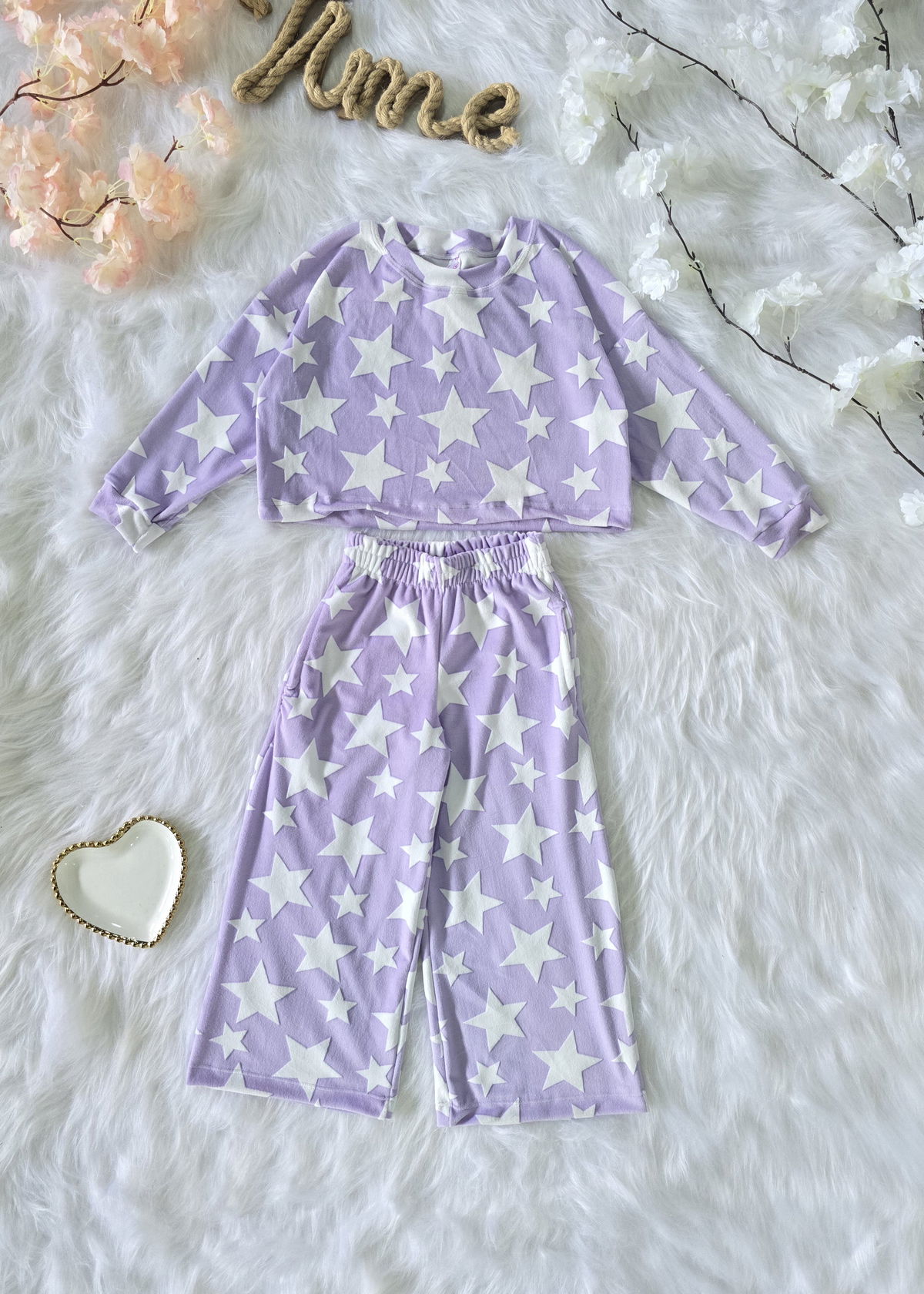 Conjunto confeccionado en tela plush bifaz grofado, ideal para brindar máximo abrigo, suavidad y comodidad. Incluye buzo y palazo con diseño de estrellas, creando un look moderno y confortable para la temporada de frío.