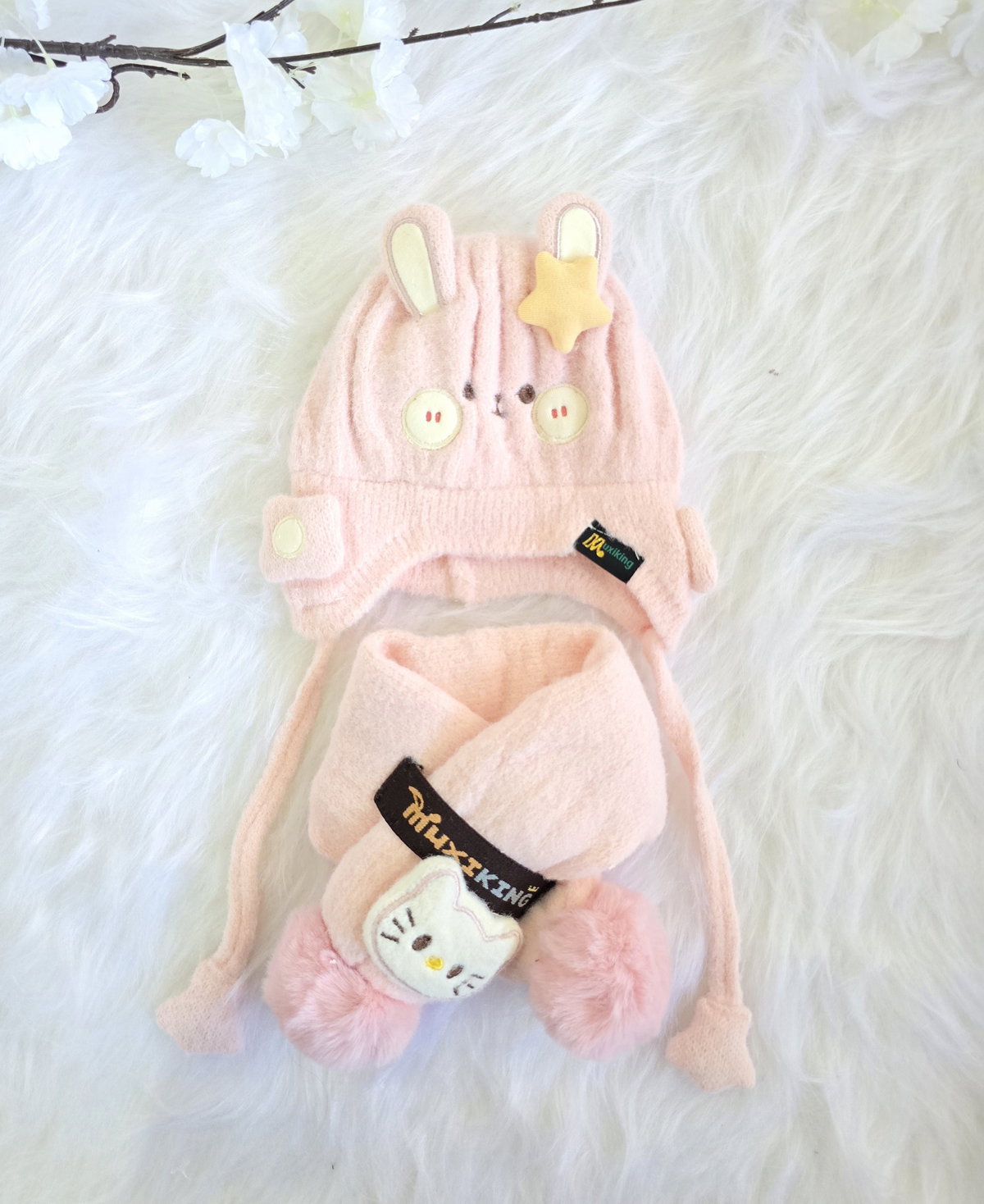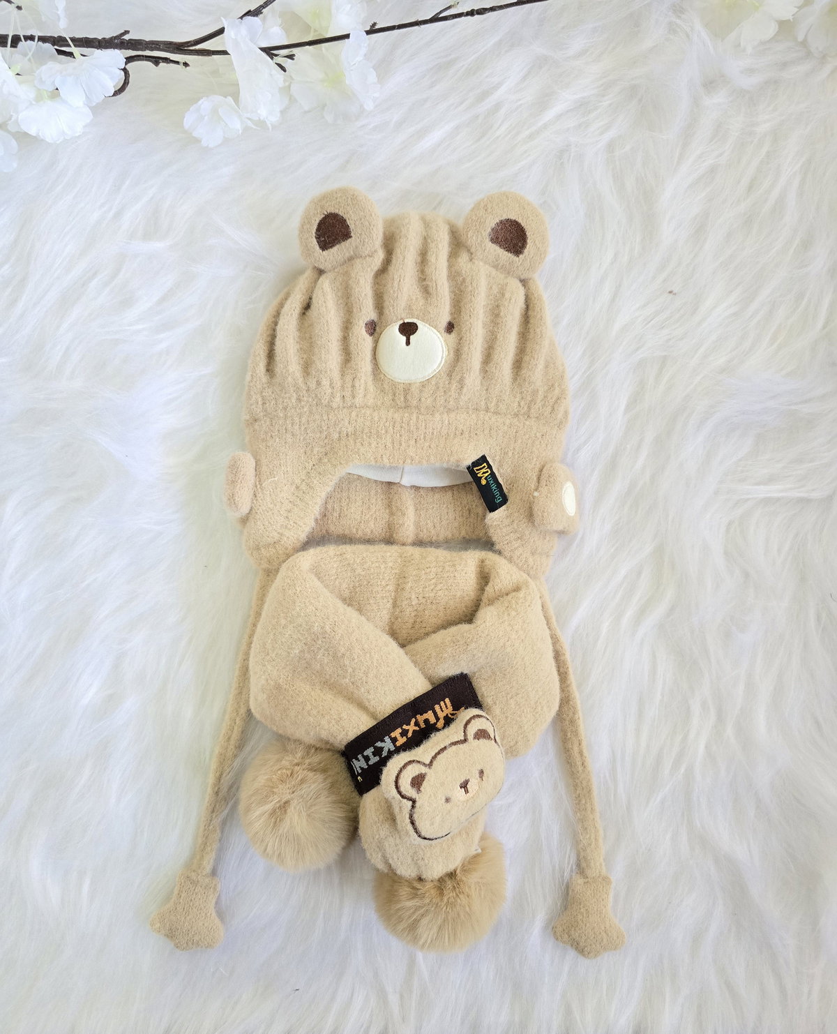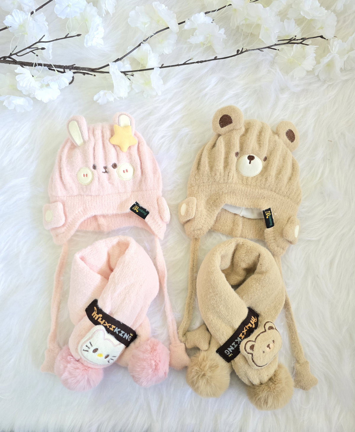 Set de invierno súper completo y tierno, incluye gorro con diseño de animalito + bufanda haciendo juego. I