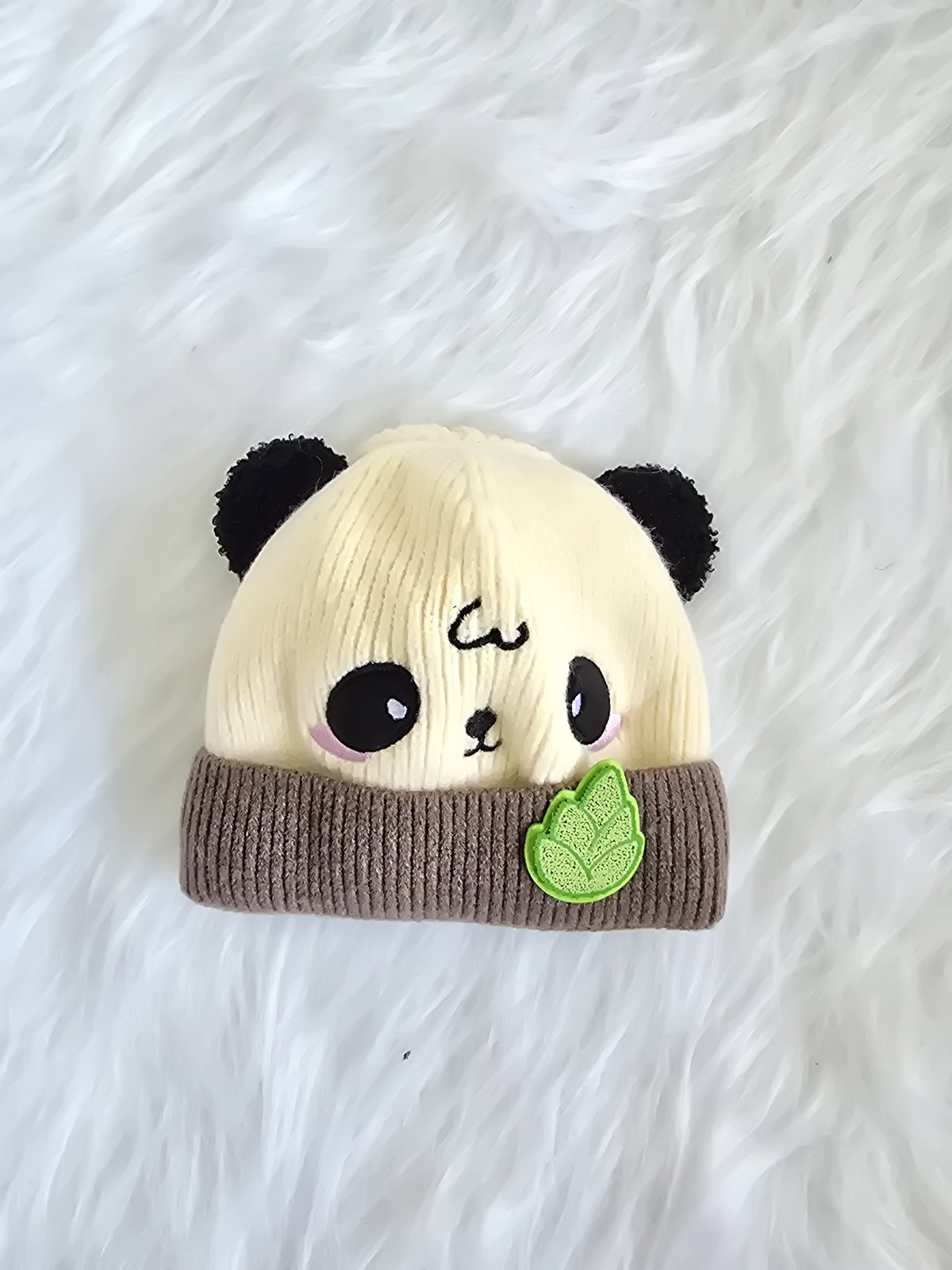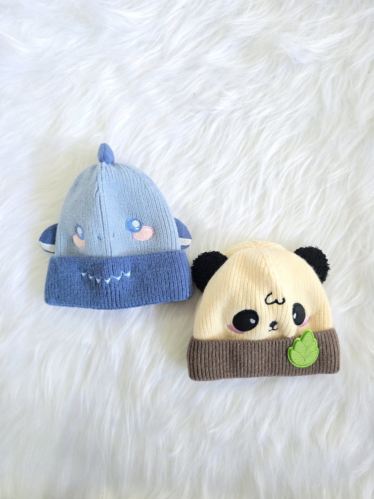 Gorros tejidos con diseños divertidos de panda y tiburón.
